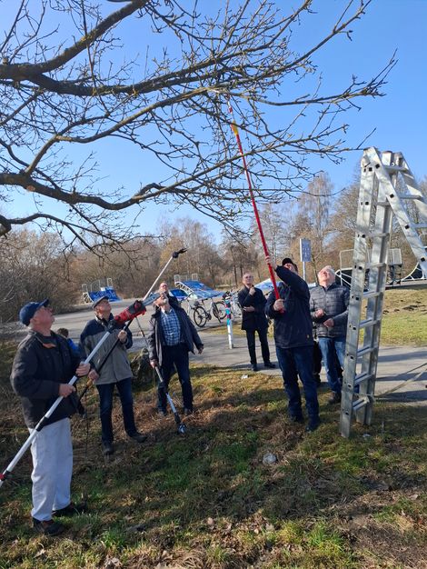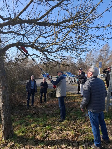 Unser Baumwart Walter Mayer zeigte am 07.03.2026 bei herrlichem Frühlingswetter interessierten Gartenfreunden den richtigen Pflegeschnitt bei einem Apfelbaum. Er erläuterte, dass ein Baumschnitt dafür sorgt, dass genug Sauerstoff und Licht an die Pflanze kommt. Das fördert die Gesundheit und Fruchtbildung des Baumes.